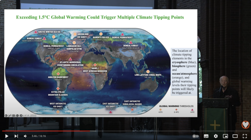 Prof. Dr. Schellnhuber (Juni 2023) – der ehemalige Vorsitzende des Potsdam Instituts für Klimafolgenforschung erklärt die Klimakipppunkte, die Erwärmung der Ozeane, den Jetstream und stellt die Studie „Quantifying the human host of Global Warming“ vor.